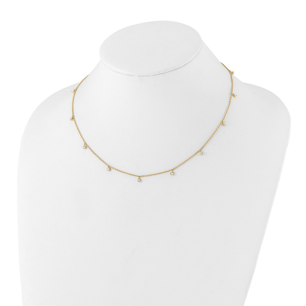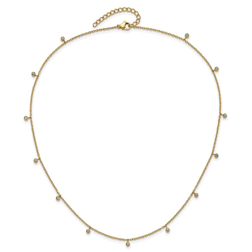 Stainless Steel Yellow IP-plated Clear Crystal Necklace 17.5" w/2in ext. 3.45gm
