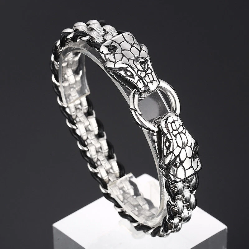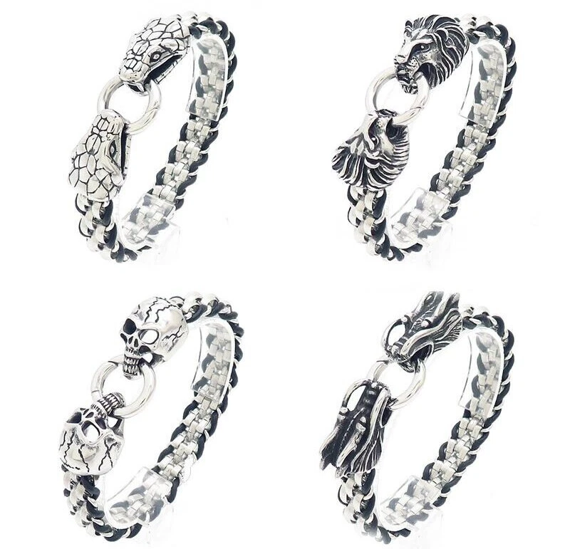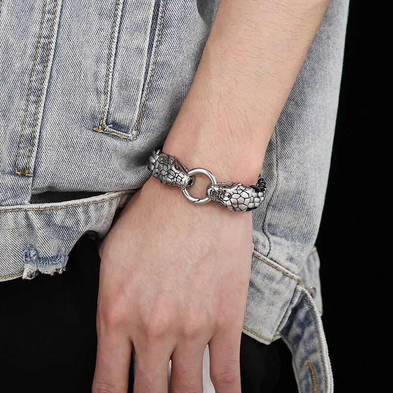 Stainless steel Lion Ophiocephalus skull buckle titanium steel bracelet
