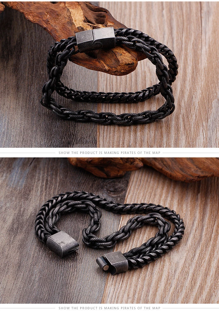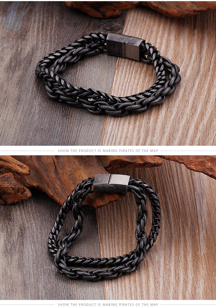 Stainless steel accessory Punk men's bracelet Titanium steel double bracelet