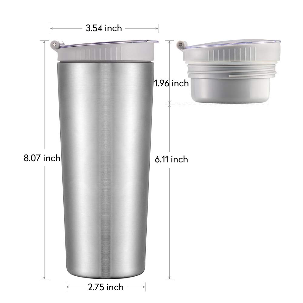 Snack tumbler 1. Snack tumbler design: Feel boring to take one mug and one snack cup? Our snack tumbler put the tumbler and snack together, let you one hand-free and enjoy your favorite drinks and snack at the same time. No matter how you on the go or for social distancing parties and beach days etc 2. To be a water bottle: Our snack tumbler extra included 1 slider lid and 1 silicone straw that you can use it as a classic coffee tumbler 3. Keep drinks super cold or warm: The insulated tumbler features double-walled stainless steel & strict vacuum technology ensure the best cooler performance,keep your water, coffee, beer, or favorite drink on lock 4. Accessories: Our snack tumbler package includes 1 silicone Straw, 1 snack cup lid, and 1 slider lid 5. Premium material: tumbler choice high quality 18/8 304 kitchen-grade stainless steel and is coated in a durable finish. All accessories are BPA free