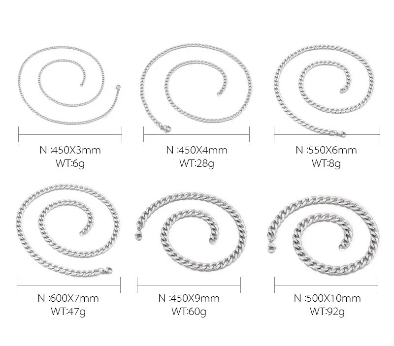 Stainless steel multi-size Titanium steel Cuban chain necklace Men's necklace