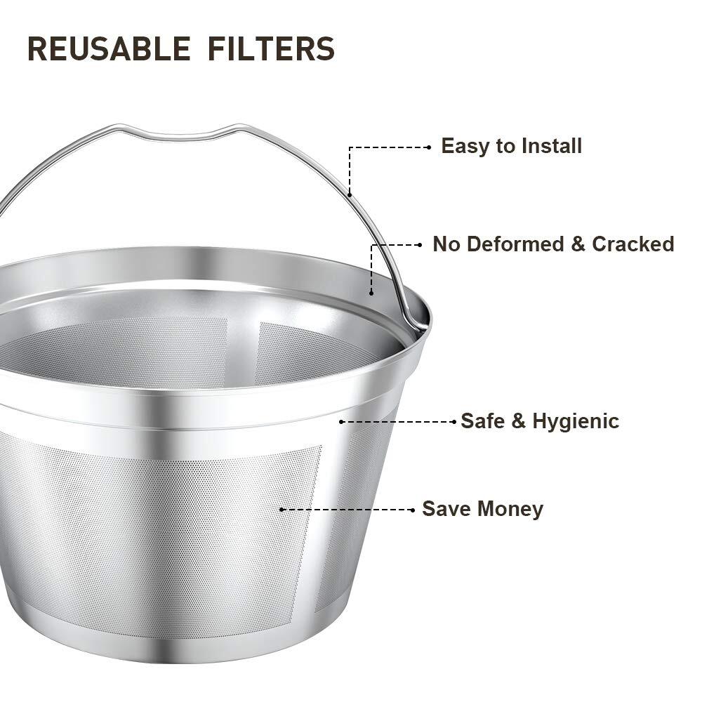 【Eco-Friendly&Save Money】Reusable Mr.Coffee 4 or.5 or 6cups basket filter can replace the paper filters.Reduce wasting and avoid spending much more money on the coffee filter. Never deformed and cracked. 【Original Taste】 Permanent coffee filter was made of food grade stainless steel and with flat bottom. Safe and hygienic.No Rusting and Corrosion. 【Dishwasher Safe &Easy To Clean】 Reusable Mr. Coffee basket filters is easy to use and cleaning under running water. 【Mr.Coffee maker and brewer】4 cup reusable filter is fit for Mr.Coffee maker and brewer.Black & Decker Gevi AmazonBasics Capresso Basket-Style Coffee Maker Filters 【Service】If you have any questions about using the coffee filter, please feel free to contact with our customer service. We provide a lifetime free return service.