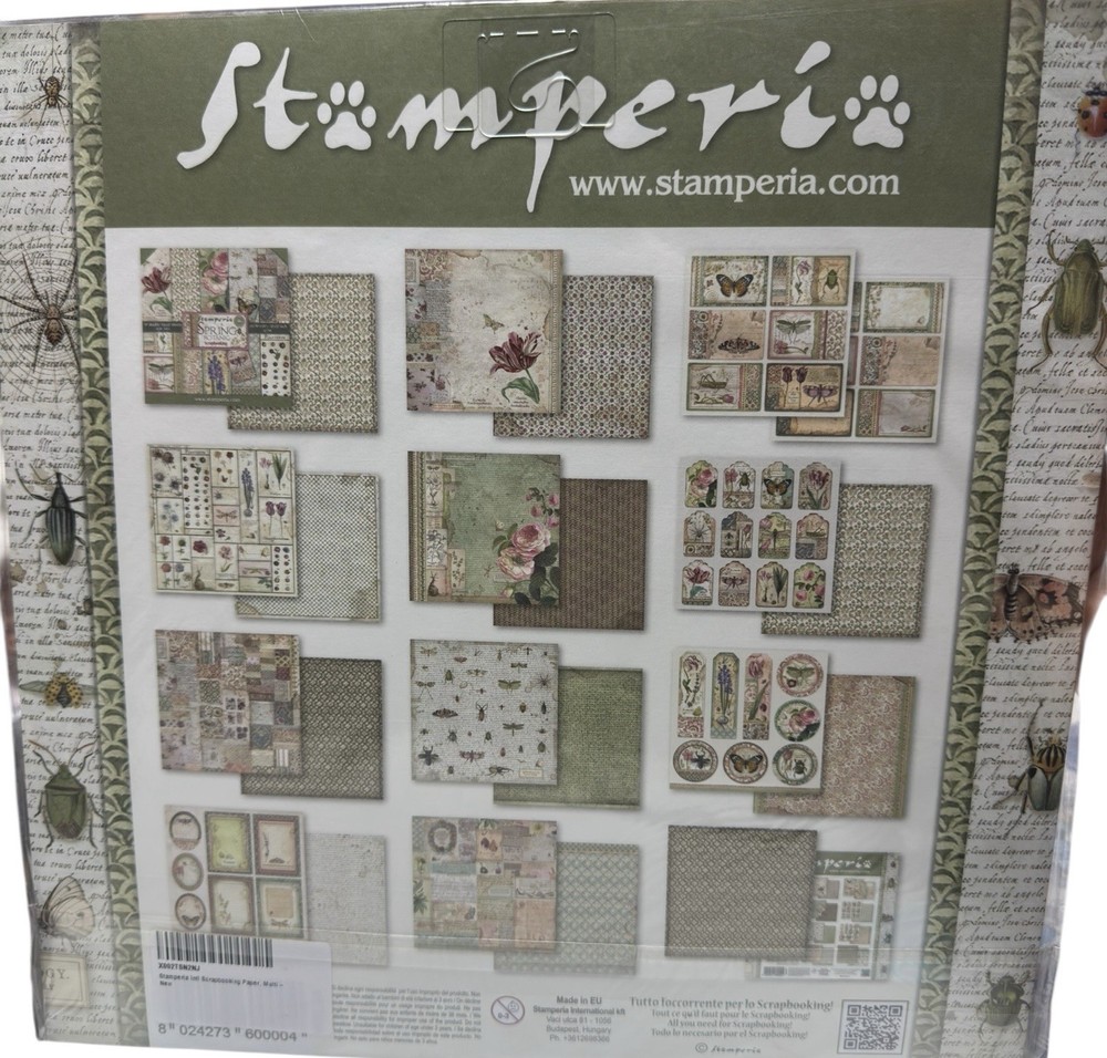 Stamperia “Spring Botanic” Scrapbooking Paper Pad. Includes: • 10 double-sided sheets • 12x12 inch (30.5 x 30.5 cm) • 190 gsm • Acid free Features beautiful vintage botanical illustrations, florals, insects, and decorative patterned backgrounds. Perfect for scrapbooking, journaling, card making, and mixed media projects. New in original sealed packaging.