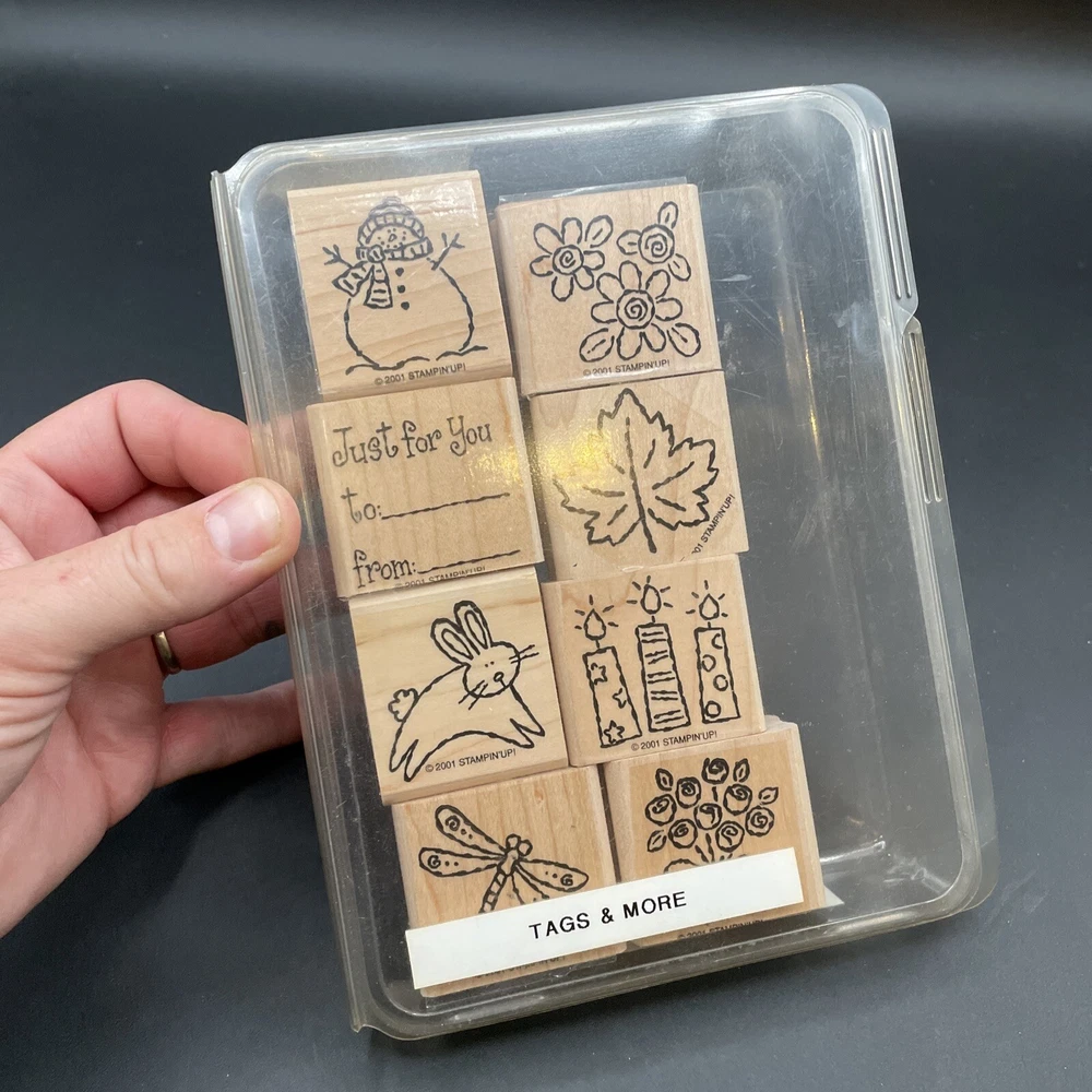 Stampin' UP! Tags & More 8-pc Set Rubber Wooden ~ Very Nice!
