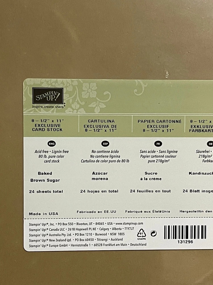 Stampin’ Up Baked Brown Sugar 8.5” X 11” Cardstock Cards Scrapbook Craft