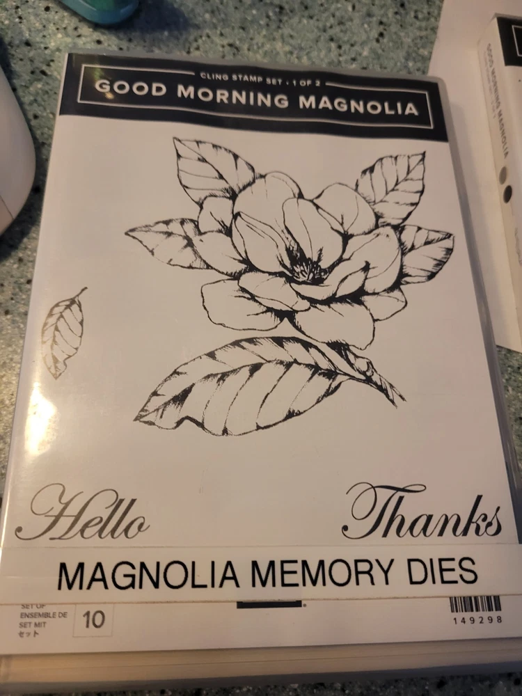 Stampin' Up! Retired Good Morning Magnolia 2 box set with Coordinating Dies of Magnolia Memory Dies 10 Stamps and 16 Dies Complete With Phrase of "Enjoy Today, Thinking of You" and many more Rubber