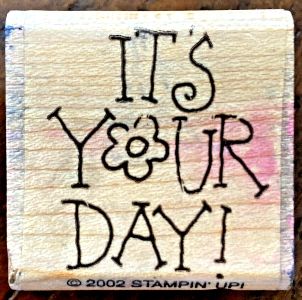 Sweet "IT'S YOUR DAY" Description 1 X 1 Wood Mounted Rubber Stamp Never Inked Shipping: USPS Ground Advantage Fast Same Day Shipping on all Items Thank You