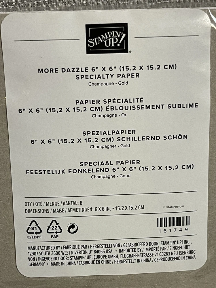 Stampin' Up! MORE DAZZLE 6 x 6 SPECIALITY PAPER NEW 8 Sheets 4 Ea Champagne Gold. Condition is New. Shipped with USPS Ground Advantage.