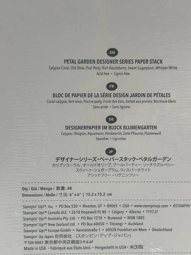 Stampin Up PETAL GARDEN DSP Stack 6x6 paper floral 48 sheets NEW
