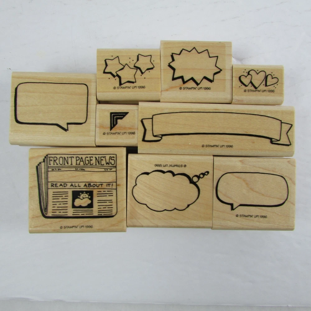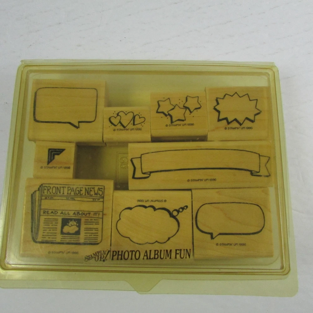 Stampin Up Photo Album Fun Stamp Set 1996 Lot of 9 NEW This lot of 9 Stampin' Up! wood stamps is perfect for creating a fun and unique photo album. The set includes a variety of phrases and designs that will add a personal touch to your projects. Made from high-quality wood, these stamps are durable and easy to use. With a range of colors and sizes, you'll be able to mix and match to create your own one-of-a-kind designs. Whether you're an experienced crafter or just starting out, this Stampin' Up! photo album fun stamp set is sure to inspire your creativity. Condition: Listed as New because stamps are in new condition and have never been used. However, due to the age of the item, plastic case may have some discoloration or minor damage due to storage. Please Visit Our Store – We add new items every day and carry something for everyone. Always a big variety at Lemstar-Deals! RETURNS: Please read descriptions. Questions are welcomed and we try to answer all inquiries ASAP. Returned items must be returned in the same condition they were sent. Return postage is the responsibility of the buyer. SHIPPING: If you would like the item shipped to Puerto Rico, Hawaii, or Alaska, or other US addresses outside of the 48 states, please contact us for the shipping cost. Intl shipping calculated by location. PROBLEMS: We like happy customers. If there is any issue with your order, please contact us and allow us to make it right for you. LOC - SMP1-3