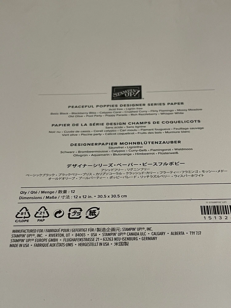 Stampin Up Retired Designer Series Paper "Peaceful Poppies" 12 x 12