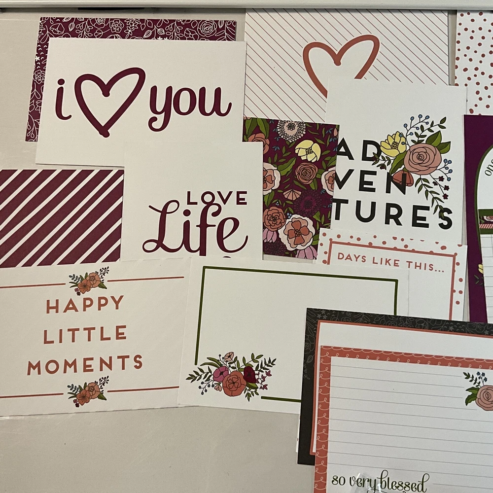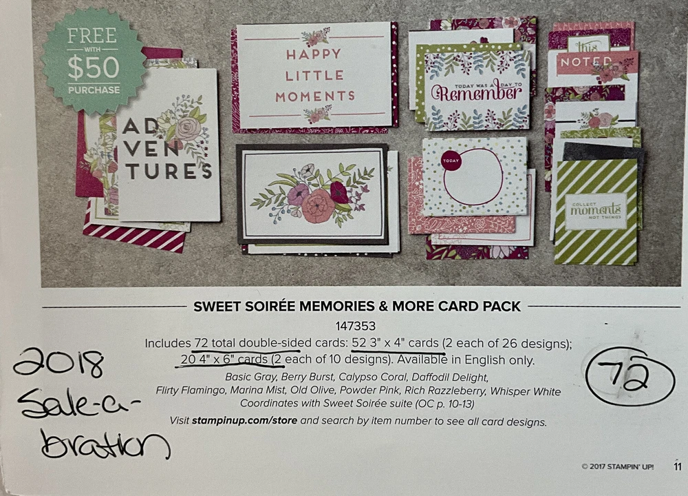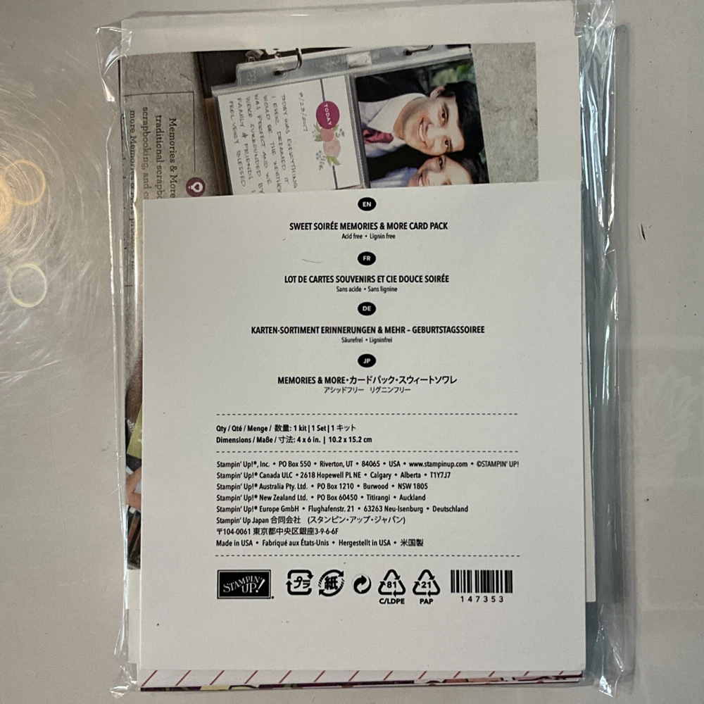 20 @ 4x6” cards 52 @3x4” cards. Packaging has been opened and the unused cards may have creased or bends from storage. Please see photos for exact conditions Includes different size cards that fit in Stamping Up or Project Life Photo Pocket Pages or you can attach to a background sheet of cardstock to custom make your own scrapbook pages. 20 @ 4x6” cards 52 @3x4” cards -Colors coordinate with: SWEET SOIREE SUITE (2017 Occasions) Flirty Flamingo, Basic Gray, Berry Burst, Calypso Coral, Daffodil Delight, Marina Mist, Old Olive, Powder Pink, Rich Razzleberry, Whisper White