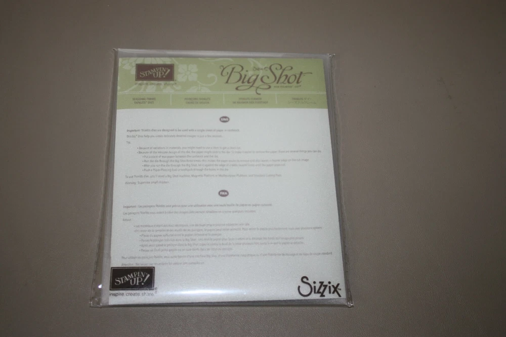 Stampin’ Up! Seasonal Frame Thinlits Dies – Set of 8 New & Sealed This is a Buy It Now! You don’t have to wait for the item to end to purchase it! This is a new and sealed Stampin' Up! Sizzix Big Shot Seasonal Frame Thinlits Die Set. These dies can be used in a Sizzix Big Shot, Cuttlebug, as well as any other roller-style die cutting machines. There are 8 metal dies in this set. These dies are very versatile. They can be used for scrap booking and other paper crafting projects. Cards are not included in this purchase. They are for demonstration purposes only. Comes from my smoke free home. I am always happy to combine shipping (in U.S. only) Please request an invoice BEFORE you pay for combined shipping discount. Thanks for looking!!!
