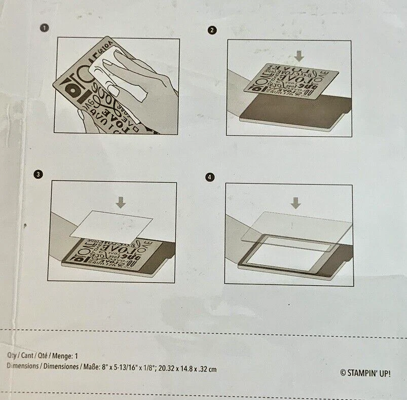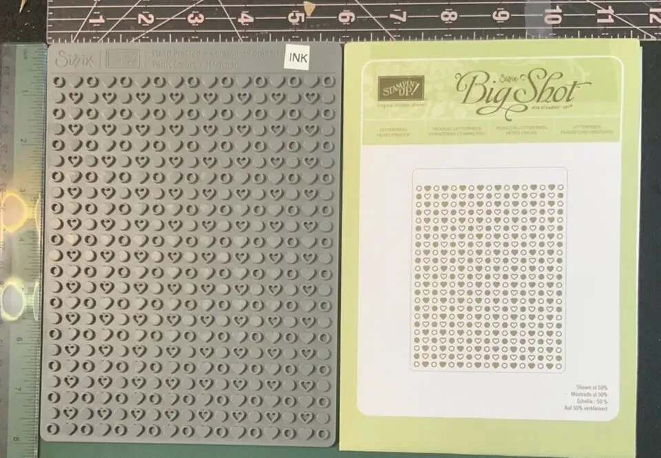 Set of 3: Fancy Fan 8in x 6in Heart Pressed 8 in x 6 in Lots of Love 8 in x 6 in Letterpress plates are super easy to use! Just use a ink pad, brayer or sponge to ink up the plate. Lay your cardstock face down onto the plate, cover and run it through your Big Shot (see instructions above in photo). Use with regular ink pads or try a Versamark pad for subtle water-mark background. FLAT SHIPPING: Flat shipping specials apply to the continental USA only. They can not be combined with other auctions. If you are buying multiple auctions, I will apply any flat shipping paid towards the actual shipping costs. COMBINED SHIPPING : I will combine multiple orders into one and charge the actual shipping cost. Adding items to your cart does NOT hold them. I can not see the items in your cart or your contact information until you agree to purchase them. This is an eBay policy I can not control. Please COMMIT TO BUY the items so that I can receive your shipping information. Once you COMMIT TO BUY , message me to request combined shipping. -OR- You can pay the listed shipping and if I can combine items into 1 shipment, I will send you a refund for the overage paid. -If you change your mind before paying, just contact me to cancel the order. -Once you pay, I have to ship and can no longer add any future purchases. REQUESTING AN INVOICE : If you have any problems, please request an invoice (only available thru desktop site (use web browser like Google, Edge, Safari; it is not available in ebay app or mobile). Or you can message me to adjust the shipping, if you have already paid. PLEASE NOTE: Ebay does not allow you to request an invoice if the listing is already discounted or on sale. If you are buying multiple items, I will have to manually adjust after you checkout and purchase the items. Just message me and I will adjust it when I ship it. INTERNATIONAL SHIPPING: I use the EBay International Shipping Program, which means I ship your item to eBay and they will mail the item to you. If you are buying multiple items and live outside the USA, please message me with the items you want to purchase. I will create a private auction for you with all the items combined so that you can get the best shipping price.
