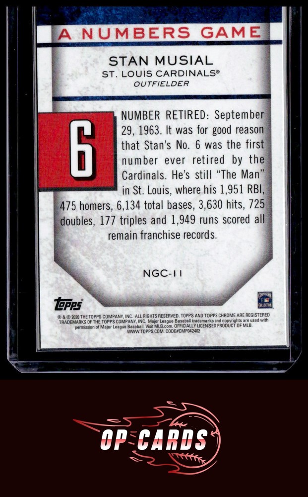 2020 Topps Chrome Update #NGC-11 Stan Musial A Numbers Game. Free Shipping Please check out our other listings for more great cards.