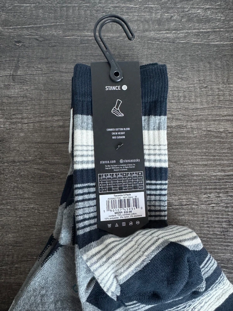 Stance Casual Combed Cotton Blend Crew Height Socks - Tacoma 3-Pack - Unisex Size MEDIUM (NWT) Condition : New with Tag ( NWT ) Size : Medium (M) - Men's 6-8.5 / Women's 8-10.5 Item Name : Tacoma 3 Pack Note: Please review all photos. Item(s) sold as-is. All sales are final. Ask any questions prior to purchasing. Thank you!