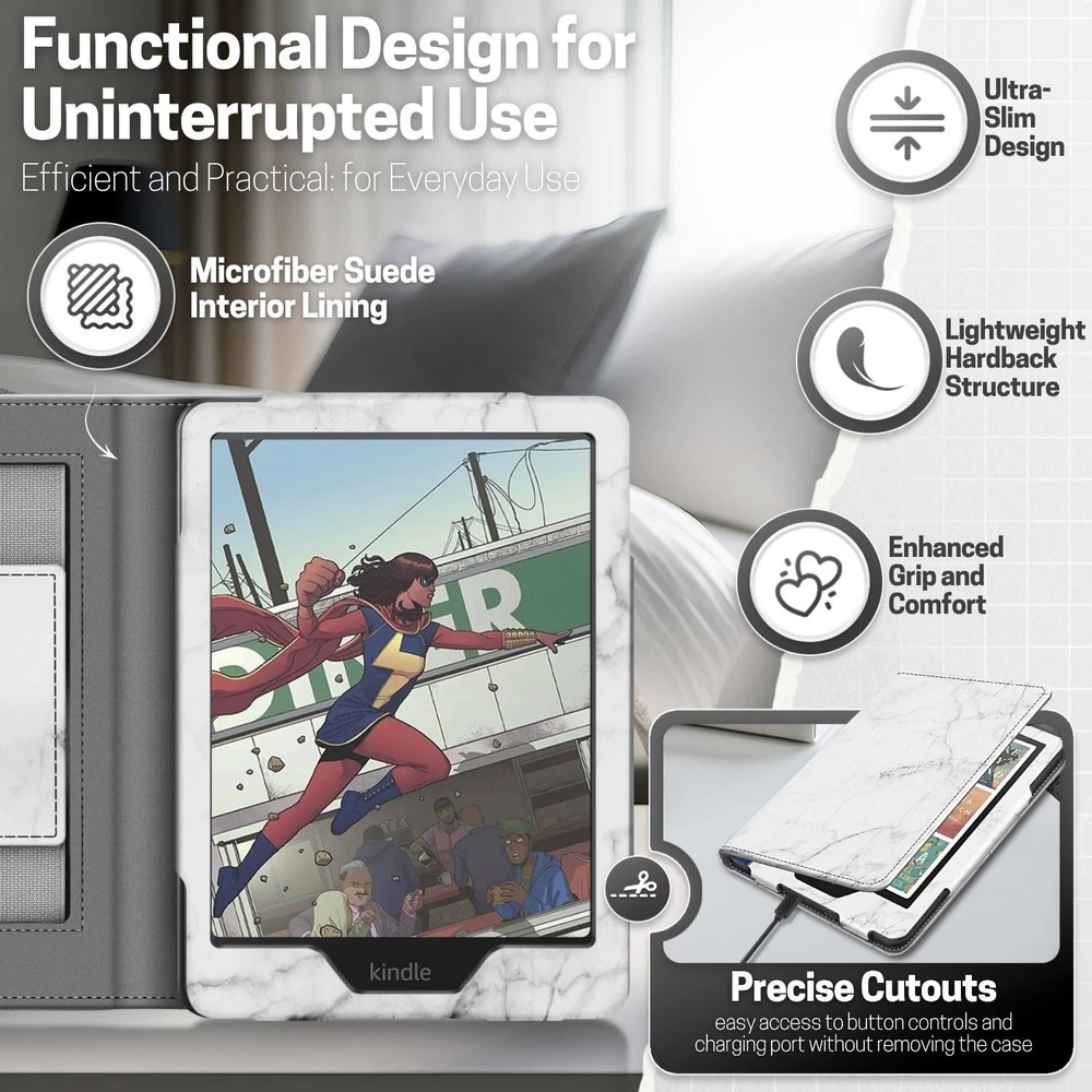 Stand Case for Kindle Paperwhite 12th / Kindle Colorsoft 2024, Marble White