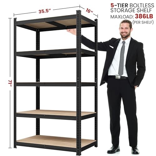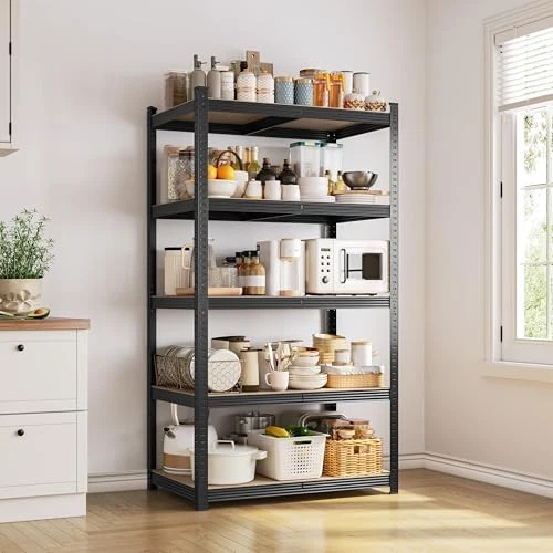 $ 69.345 Tier Storage Shelves 31.5" W x 15.75" D x 72" H, 31.5"Wx15.75"Dx72"H Black