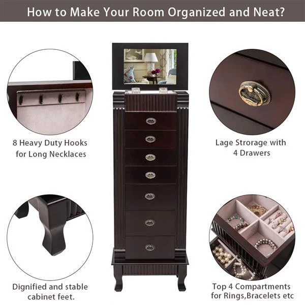 Standing*Armoire*Makeup*and*Divided*Organizer,Large*Jewelry*Storage*w/7*Swing*Ne
