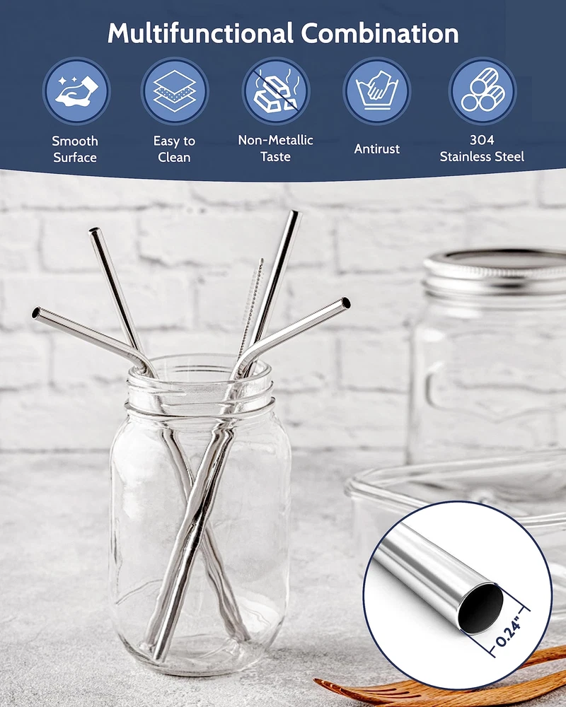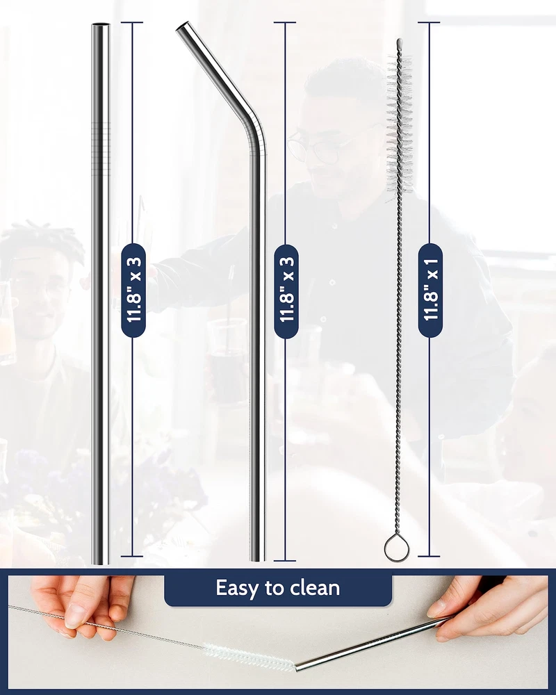 To make your car water cup more convenient to use, we provide you with a set of high-quality stainless steel straw combinations! This combination includes three 12 inch long bends and three 12 inch long straight pipes, designed specifically for 40 ounce automotive water cups. Whether you prefer drinking straight or tilted, our straws can meet your needs. These straws are made of high-quality stainless steel, durable and odorless, while also possessing rust resistant properties, keeping your straws brand new. We also include an 11.82 inch professional straw brush for thorough cleaning and maintenance. For convenience, we also provide a 12.59-inch linen bag for you to enjoy a refreshing drinking experience anytime, anywhere. Whether for daily use or travel, in the car or outdoor activities, our stainless steel straw combination will become your perfect companion. Choose high-quality and convenient options to make your drinking experience more enjoyable! 🥤📏Perfect Size: Our product portfolio includes 3 pcs 12-inch long bends and 3 pcs 12-inch long straight pipes, designed specifically for 40-ounce automotive water cups. The standard size of the stainless steel straw ensures a perfect fit to your cup, providing you with the best drinking experience 🥤🌟 High-Quality Materials: We use high-quality stainless steel to make straws, ensuring durability and not producing any odors or chemicals. The stainless steel material also has anti-rust properties, making your straw always look brand new 🥤🔄Dual Use of Curved and Straight Pipes: Our straw combination can meet your needs whether you prefer drinking straight or tilted. Three curved pipes are suitable for conveniently drinking liquids from car water cups, while three straight lines can be used for other beverages such as iced coffee or milkshakes 🥤🧹Easy to Clean: Our straw set is equipped with an 11.82-inch long professional straw brush. The soft bristles of this brush can easily reach every corner of the straw, ensuring a thorough cleaning. You can easily clean and maintain the straw to keep it clean at all times 🥤👜Carry It with You: For convenience in carrying and storing, we also provide a 32cm linen bag. You can put straws and brushes into a bag and enjoy a refreshing drinking experience anytime, anywhere, whether in the car or in outdoor activities
