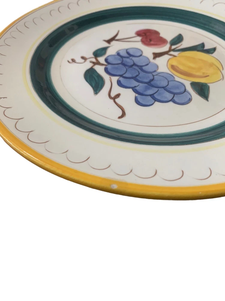 Stangl Pottery *Fruit* Pattern Charger / Serving Plate Size: 11" Round. Features & Accents: Yellow rim, Various fruits Handprinted in Center, Vintage 1966-1978. Made in Trenton NJ. ***I have several other Pieced in this pattern, check our ebay store for availability. We are happy to combine shipping when possible*** Condition. Pre owned, Vintage. Nice, Clean. Smoke Free Home. Same day shipping if purchased by 3:00 PM, EST. InternationalSales Ship through Ebay International Shipping Program. Free Returns. We truly try to disclose all information on items we list. However if we miss something, please contact us before leaving negative feedback and allow us to resolve the problem or issue a returns. Your choice. Thank you.