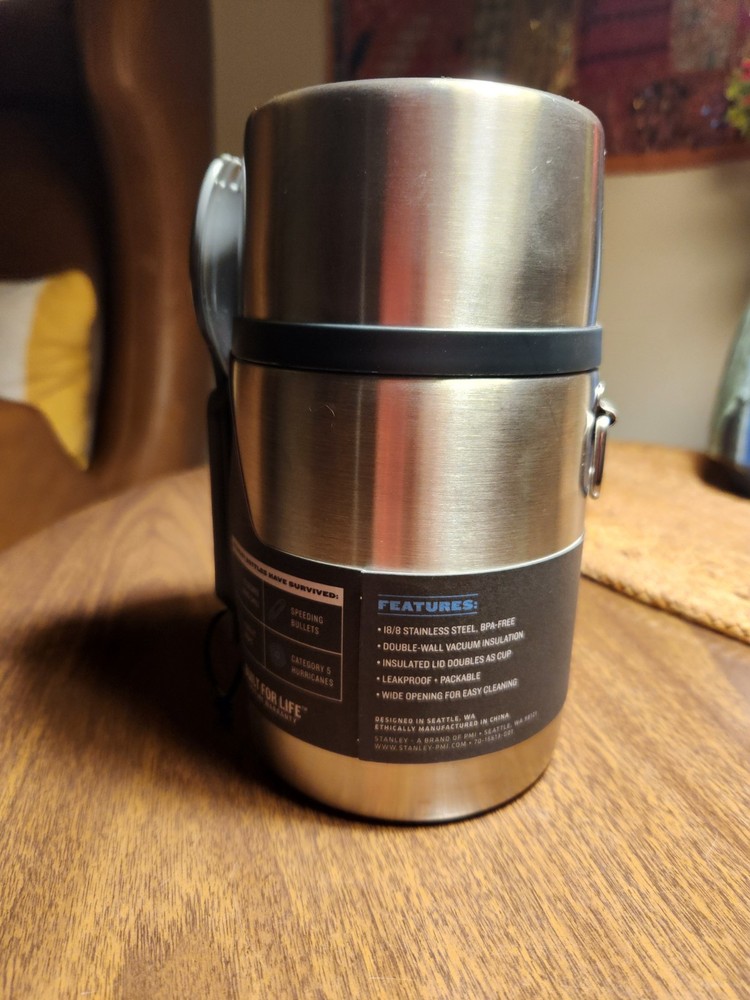 This auction is for one (1) Stanley All- in - One Food Jar. 18 ounces - "12 hours cold" " 12 hours hot" Great for just about any excursion out of the house - camping, sports games, work lunch! Top doubles as the cup or bowl for your food/beverage. New, unused, with paper label intact. --------------------------------------------------------- Shipping is paid by buyer unless item shows shipping included. We normally have two options listed for you to choose from. We sell for fun and pocket money from items found in our family and friends attics, estate sales and similar. We don't accept returns unless the item is mis-represented on our part in a manner that the photos do not disclose. (which would be unintentional). Our aim is to make a few dollars and have you happy with your find. Our house has cats, in case that matters. If you have any questions please contact us through Ebay and we'll be happy to answer. Thank you!