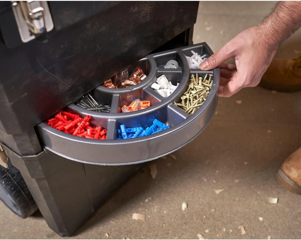 Made of polypropylene with metal locking hinges. Can be separated into two units in a few seconds: - tool box with tray and two organizers in the lid; In addition features - extra large compartment with 25 litres of load capacity. Central rotating small parts organiser, heavy duty wheels, foldable carry handle, metal side attachment hinges and padlock slots Specifications Product Type On Wheels Rolling Workshop Organiser Lid Yes Weight Capacity 4.5 Kg Modules - Deep Tray Yes x 1 Product Width 47 cm Capacity 55.1 l Modules - Organiser Yes x 1 Hinge Material Plastic Hinge CE Mark No Product Height 61.9 cm Modules - Low Tool Box No Lockable Yes Modules - Basket No Product Weight 4,547 Kg Hinge Material Metal Lock Dimensions (on wheels) Large Product Handle Type Plastic Type on Wheels Tool Ca Looev Our eBay Store About Us Contact Us Add to Favorite Sellers Stanley 1-93-968 2 in 1 Mobile Tool Drawer Set 181.99 Made of polypropylene with metal locking hinges. Can be separated into two units in a few seconds: - tool box with tray and two organizers in the lid; In addition features - extra large compartment with 25 litres of load capacity. Central rotating small parts organiser, heavy duty wheels, foldable carry handle, metal side attachment hinges and padlock slots Specifications Product Type On Wheels Rolling Workshop Organiser Lid Yes Weight Capacity 4.5 Kg Modules - Deep Tray Yes x 1 Product Width 47 cm Capacity 55.1 l Modules - Organiser Yes x 1 Hinge Material Plastic Hinge CE Mark No Product Height 61.9 cm Modules - Low Tool Box No Lockable Yes Modules - Basket No Product Weight 4,547 Kg Hinge Material Metal Lock Dimensions (on wheels) Large Product Handle Type Plastic Type on Wheels Tool Cart Number of Wheels 2 On Wheels Yes Depth 295 mm V-Groove for Wood No Number of Pieces 3 Product Weight Gross 4,547 Kg Is this a set? No Modules - Drawer No Modules - Deep Tool Box Yes x 1 Product Length 47.3cm Packaging Carton Tray Tote Yes Product Details Color Height Length EAN 3253561939686 This is the footer. More links or text can go here.