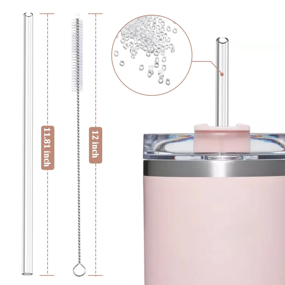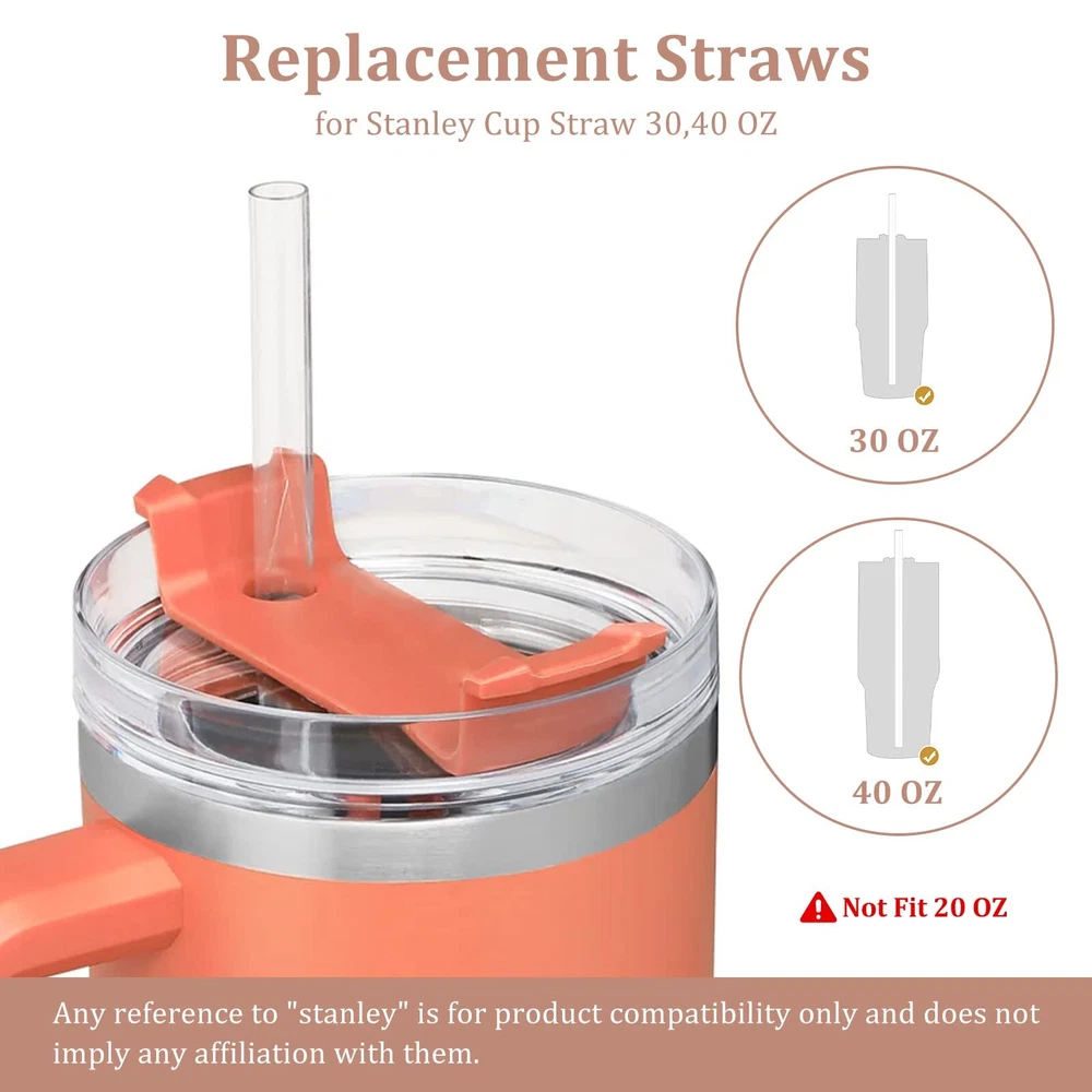 Replacement Straw: Compatible with Stanley Adventure Quencher Travel Tumbler 40oz Cornflower, Stanley cup 40oz, and 40oz Quencher with handle. Any mention of "Stanley " is for compatibility purposes only and the product is not a sponsorship or endorsement of, or associated with, the brand for which it is intended Premium Material: Each straw replacement for tumbler 40oz made of the same food-grade plastic as the prototype, smooth edges, BPA-free, odorless, reusable, and durable, could be daily used for Stanley Quencher tumblers in peace of mind Adjustable Length: The length of the replacement plastic straw is 12 inch, please measure the height of the stanley tumbler cup, cut your new replacement straw to fit your stanley cup according to the picture description on detail page Easy to Clean: The straws for cups of 12 inch in length, 0.4 inch in diameter, the length of the cleaning brush t is 12 inch, and the straw brusht can be bent, you can be reused by simply cleaning it with the included cleaning brush. Notice: In order to avoid straw damage, please wash it by hand, do not put it in the dishwasher Package Included: The package including 6 Pack Reusable Straws and 1Pack cleaning brush, Please replace the straws for your Stanley Water cup every 2 to 3 months to keep your cup brand new and your drinking water safer and healthier