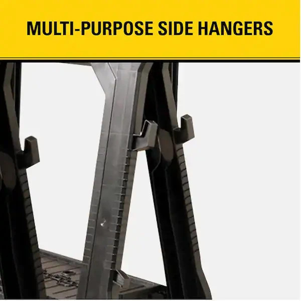 Stanley 31 in Folding Sawhorse (2 Pack) Portable Sturdy Saw Horse Tray Stand Set The Stanley Portable Folding Sawhorse secures your sawing surface. These sawhorses are collapsible for easy transporting and storage. When used as a pair, this lightweight and sturdy sawhorse twin pack can hold 1,000 lbs. 31 in. H for comfortable working Multi-purpose side hangers for storage of accessories Strong tray connection helps prevent sawhorse from collapsing under heavy load 2 built-in v-grooves help hold materials in place for cutting Ruler with rubber points for load stability 1,000 lbs. weight capacity per pair 2 saw horses