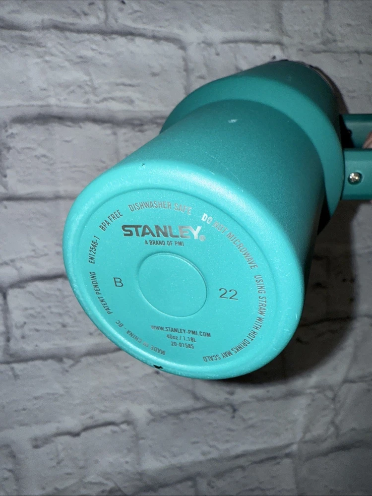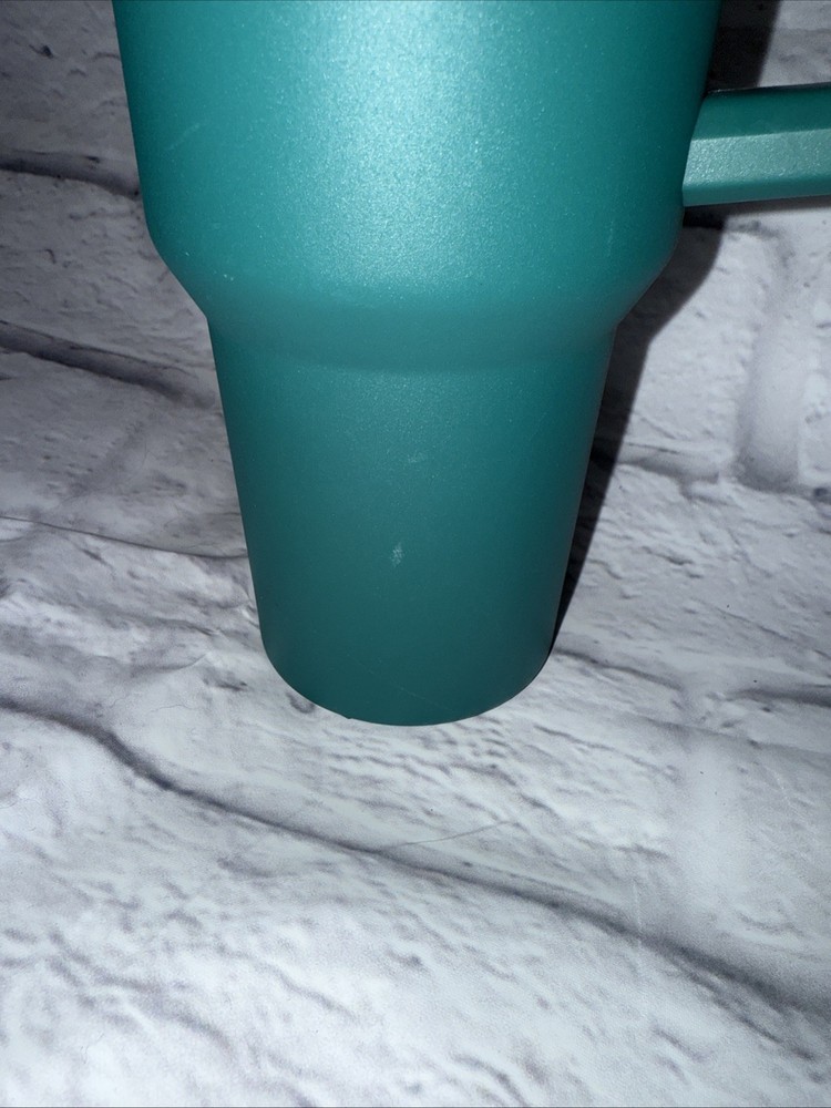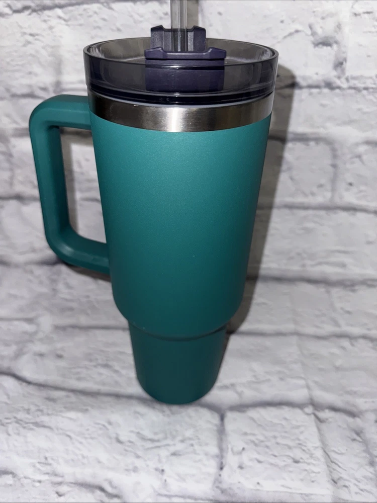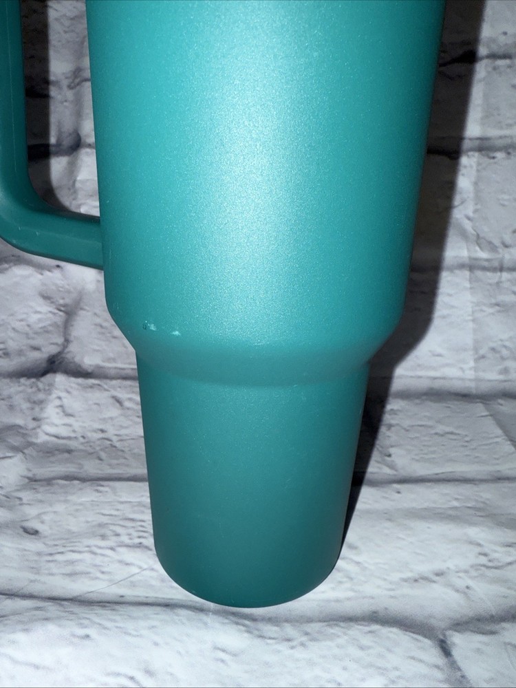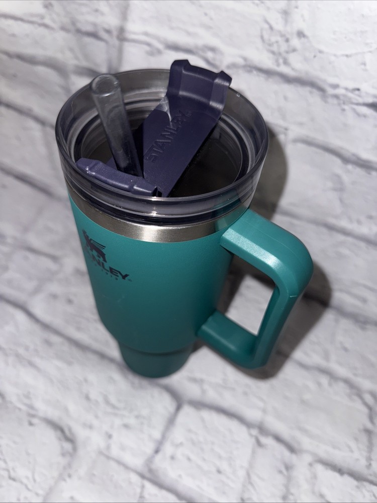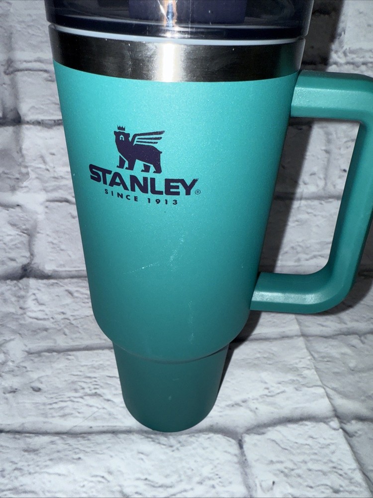 The Stanley 40 Oz Quencher Teal water bottle is a durable and spacious stainless steel water bottle with a screw-on lid. With a volume of 40 fl oz, it is perfect for staying hydrated during outdoor adventures and recreational activities. The teal color adds a touch of style while the insulated features help to keep your drinks cool for longer periods. Additionally, the BPA-free material ensures safety for your beverages, and the included straw and handle make it convenient for on-the-go use. See photos for normal signs of wear/scuff marks All items shipped from smoke free but pet friendly home