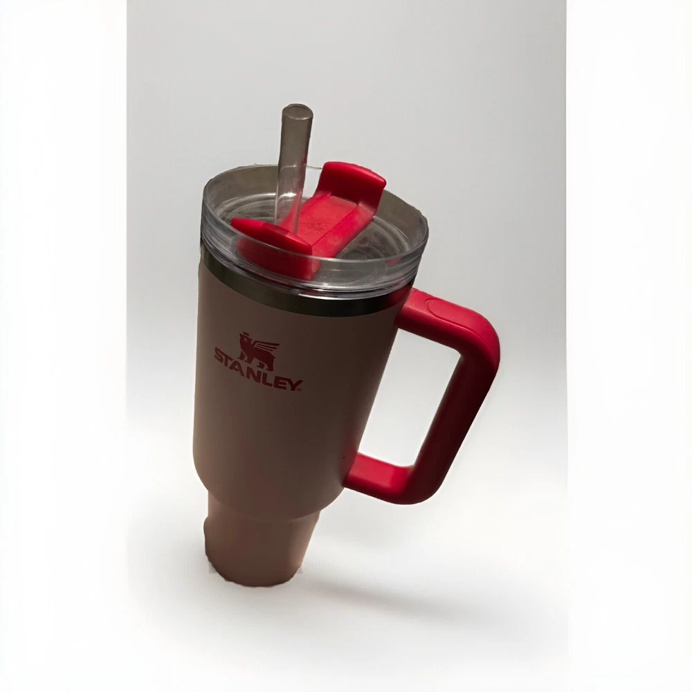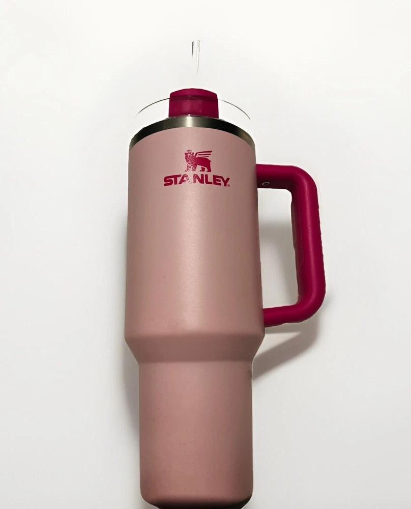 Pre-owned limited addition Introducing the Stanley 40oz Flamingo Pink Tumbler Stainless Steel H2.0 FlowState Quencher, the perfect addition to your drinkware collection. This three-piece tumbler set comes with a sturdy handle, lid, and straw, making it easy to enjoy your favorite hot or cold beverage on the go. Crafted from high-quality stainless steel, BPA-free plastic, and recycled materials, this tumbler is durable, break/chip resistant, and suitable for hot beverages. Its solid color pattern and Barbie character design make it a great gift for any sports enthusiast or travel lover. With a capacity of 40oz and a weight of 2.49lb, this tumbler is perfect for beach trips, Christmas celebrations, and daily commute. Get your hands on this charming tumbler today and enjoy your drinks in style!
