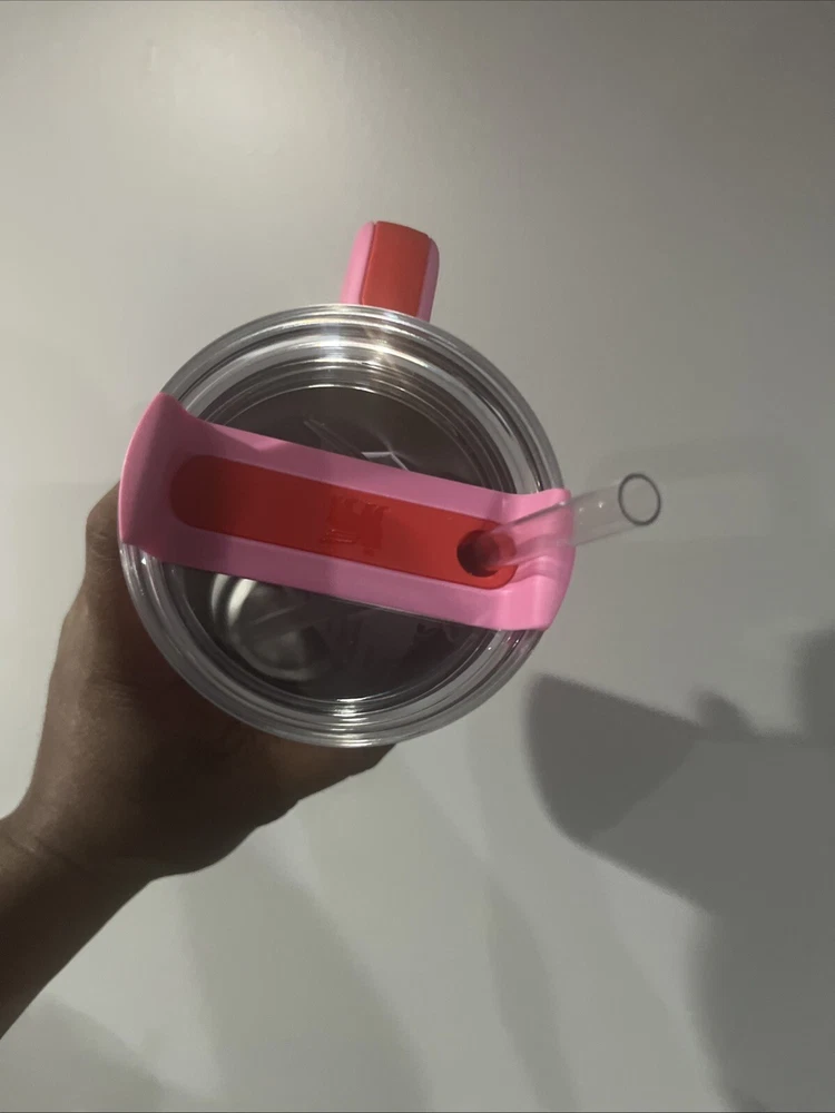 The Stanley 40oz H2.0 Target Exclusive Quencher Tumbler features a charming design with hearts, making it a perfect Valentine's Day gift. This three-piece set comes in a pink color and is made of stainless steel, capable of keeping beverages cold for 12 hours and hot for 4 hours. The tumbler has a 40 oz capacity and includes a handle, lid, and straw for added convenience. It is suitable for both hot and cold drinks, ideal for adults, teens, and kids alike. The product is themed around love and can be personalized.