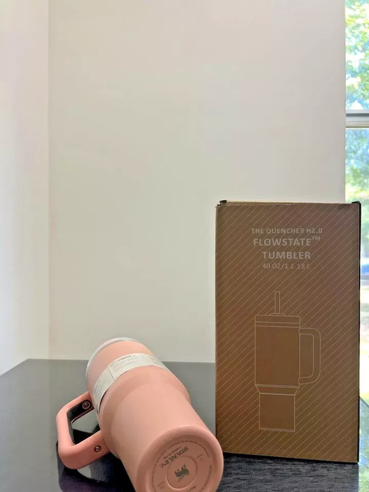This Stanley tumbler keeps drinks hot or cold for hours—love the double lids and straw! Despite a few minor cosmetic marks, it works perfectly. The 40oz size is great for all-day hydration, and the pink color is so cute. Highly recommend!