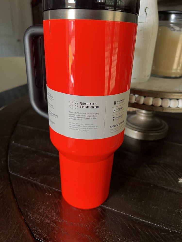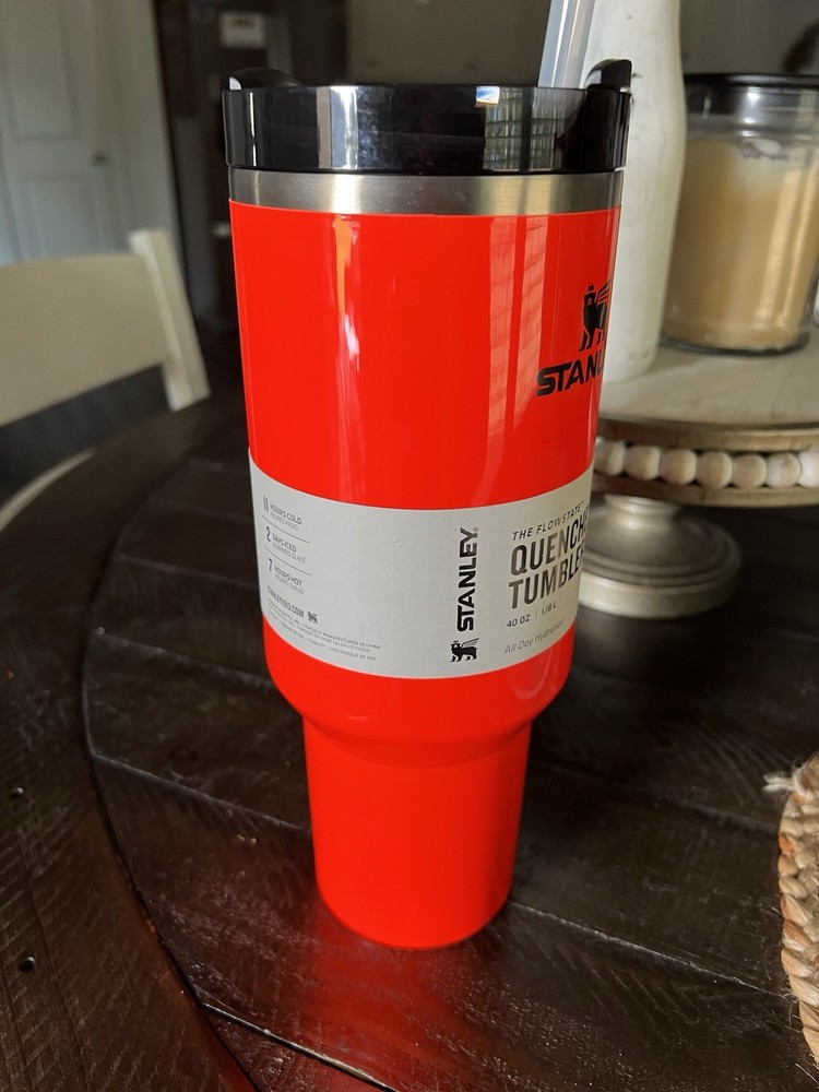 Upgrade your beverage experience with the Stanley 40 oz Quencher H2.0 Stanley Tumbler in vibrant Neon Orange. Designed for durability and performance, this tumbler is crafted from high-quality stainless steel with BPA-free plastic components, ensuring your drinks are free from harmful chemicals. The solid color, orange tumbler is adorned with a sleek, smooth style that's perfect for all occasions, especially spring gatherings. The tumbler comes as a three-piece set, including a sturdy lid and a convenient straw, making it easy to enjoy your favorite hot or cold beverages on the go. Its 40 oz capacity and double-walled construction keep liquids at the desired temperature for longer, while the dishwasher-safe design makes cleanup a breeze. At 12 inches in height and 6 inches in width, it's the ideal travel mug for those who demand both style and function.