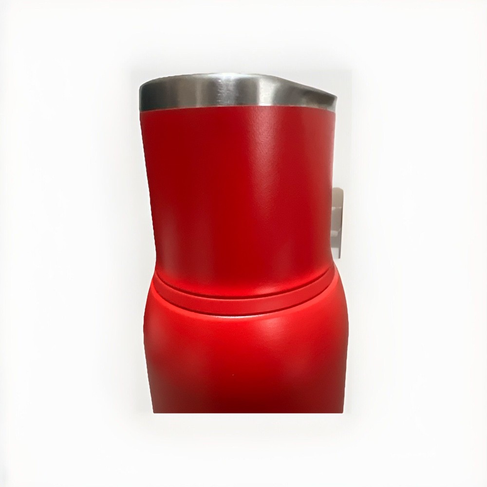 The Stanley 45oz Adventure To-Go Bottle in Chili Pepper is a portable drinkware option designed for outdoor adventures. Made of stainless steel, this bottle features a sleek and durable design suitable for on-the-go use. With a large 45oz capacity, it is ideal for keeping beverages hot or cold for extended periods. The chili pepper color adds a vibrant touch to the overall aesthetic, making it a stylish and functional choice for those who enjoy outdoor activities or simply need a reliable drinkware option. Bottle is slightly dented on the cup area as shown in pictures.
