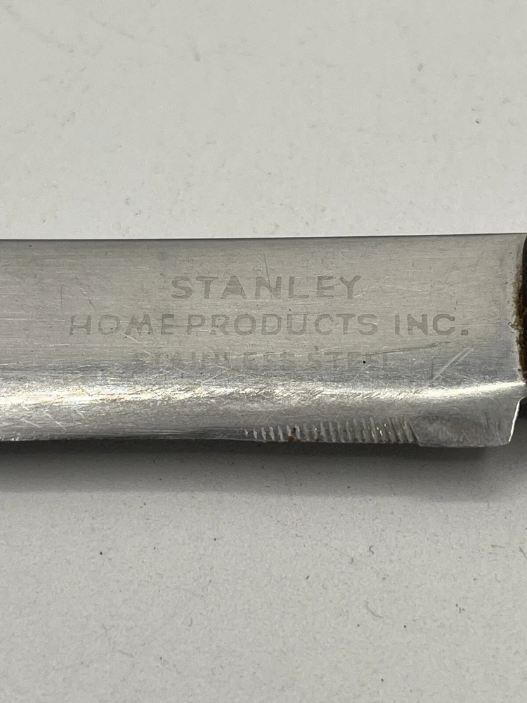 This Stanley Home Products Inc stainless steel knife is perfect for carving and slicing through meat with ease. With a blade length of 4.5 inches, this steak knife is designed for maximum efficiency and comfort. The knife is made from high-quality materials, ensuring durability and longevity. The knife is ideal for use in the kitchen or at the dinner table, and is suitable for a variety of meats. The handle is designed for a comfortable grip, and the knife's brand and type are sure to impress. Whether you're a professional chef or just enjoy a good steak, this knife is a must-have addition to your collection.