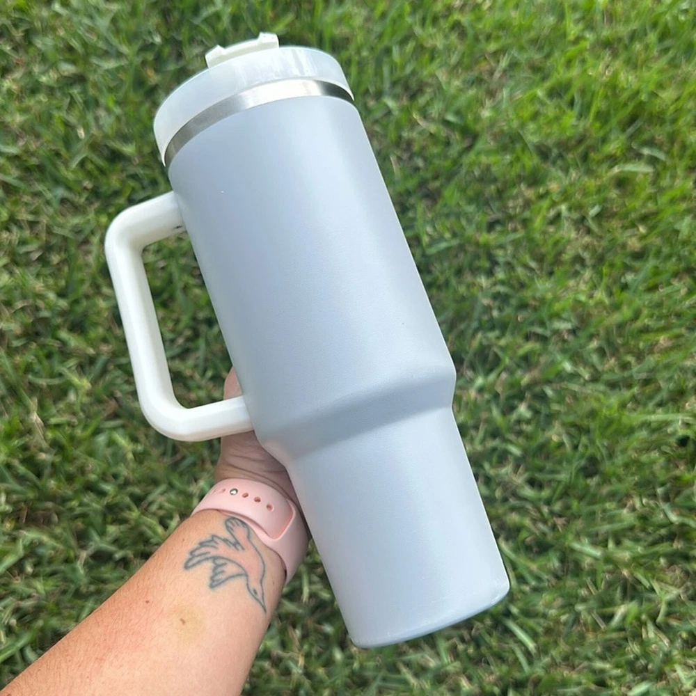 Great preowned condition Scuffs & small dent on bottom (pictured) 40oz - Color: Granite Released in 2022 - White Stanley logo - No straw