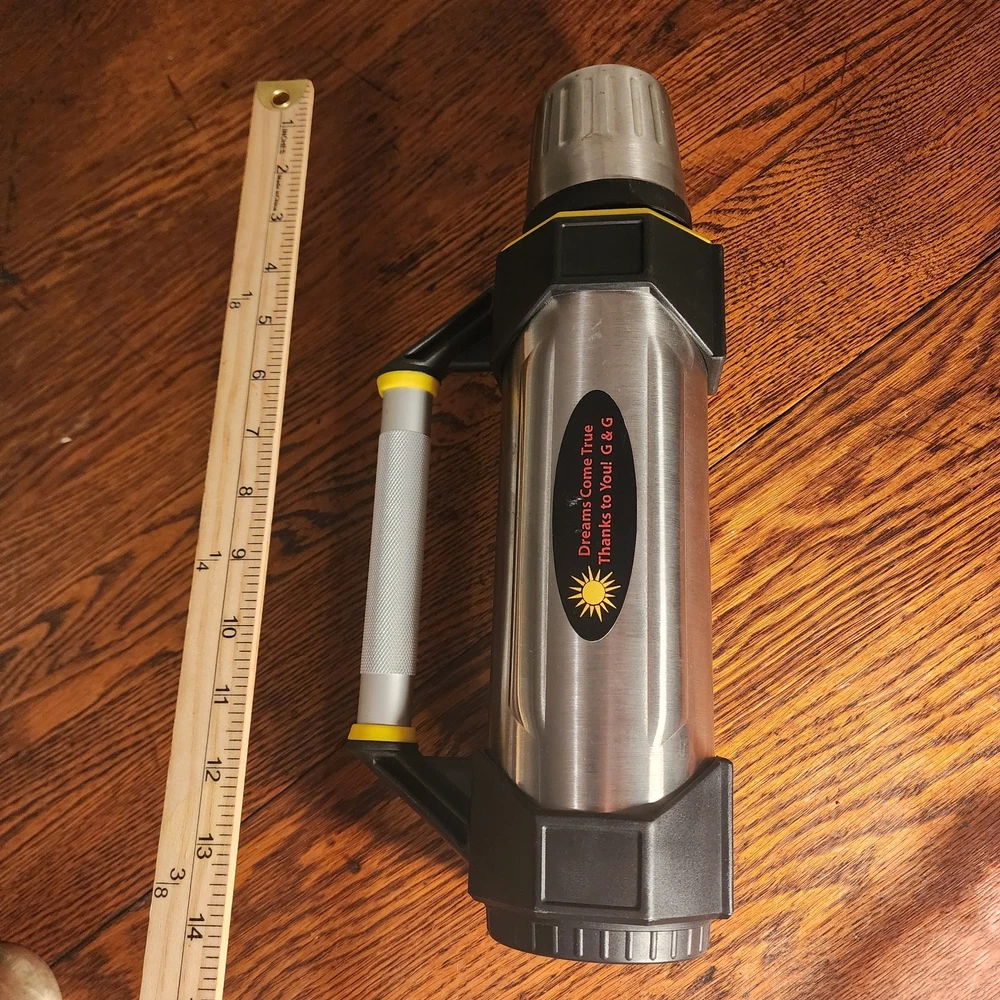 The Stanley Aladdin THE BOLT Stainless Steel Thermos with Handle is a stylish and functional insulated bottle with a capacity of 1.1 Q / 1 Liter. The unique design features a bolt pattern and comes in a colorful multicolor finish. Made of durable stainless steel and plastic, this thermos is perfect for both hot and cold beverages. The twist lid and convenient handle make it easy to drink on the go. This model, inspired by the Aladdin theme, is a practical and eye-catching addition to any kitchen or dining collection.