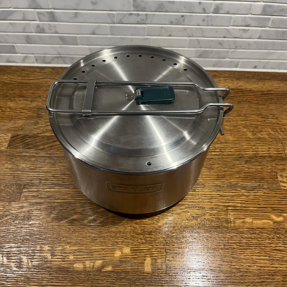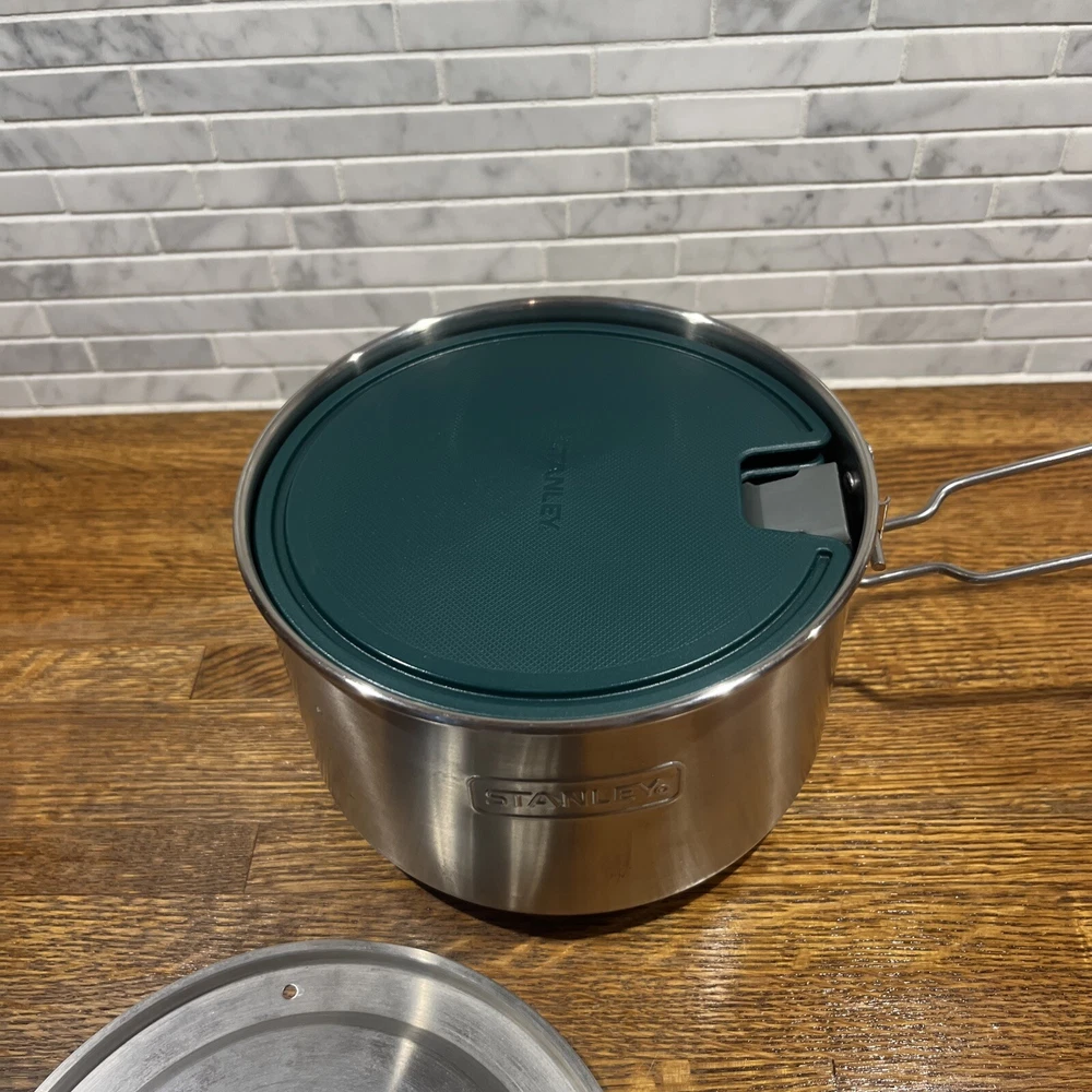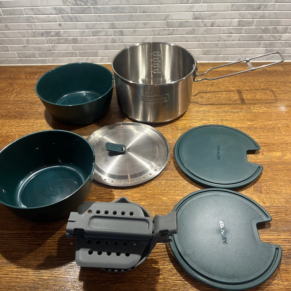 Enjoy your outdoor adventures with the Stanley Camping Cook Set Mess Kit. This 8-piece set includes a 1.6qt/1.5L stainless steel pot pan with bowls and lids, ladle and spatula. perfect for cooking up delicious meals while camping or tailgating. The set features BPA-free materials and is dishwasher safe for easy cleaning. The Stanley Camping Cook Set Mess Kit is designed with durable stainless steel and is perfect for any outdoor activity. With a 4" item height, this cook set is easy to carry and includes all the necessary items for cooking. Get ready for your next camping trip or tailgate party with this amazing cook set.