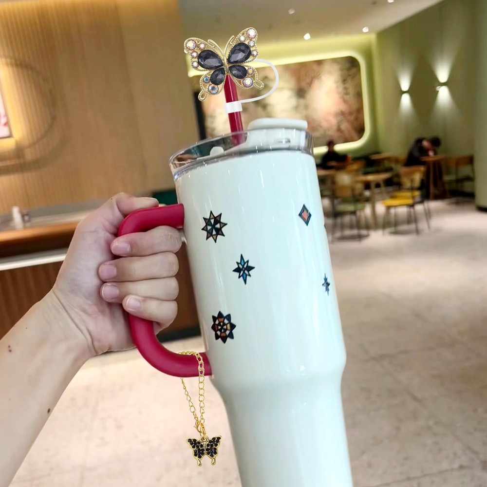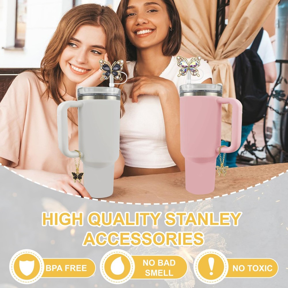 This Stanley Cup accessory set is a total game-changer! The crystal straw toppers add such a cute, stylish touch with their sparkly charm chains—they catch the light beautifully. The food-grade silicone covers keep my drinks clean and dust-free, plus they’re super easy to clean. Love how they make my cup look extra fancy while being practical too! Definitely a must-have for anyone who loves personalizing their drinkware.