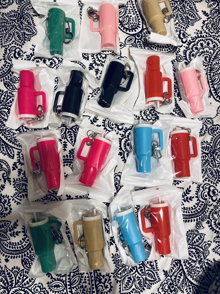 This mini Stanley cup keychain is a versatile and stylish accessory that can hold chapstick, jewelry, or even medicine. Made from high-quality and eco-friendly PLA, it features a multi-color design with the iconic Stanley tumbler theme. The keyring is pre-installed for easy use. This keychain is perfect for those who love to showcase their love for the Stanley tumbler brand and want to add a modern touch to their collection. It is made in the United States and is suitable for any era.