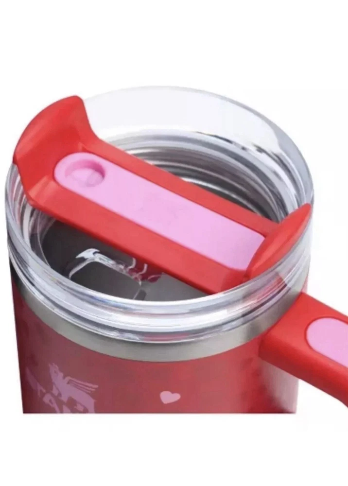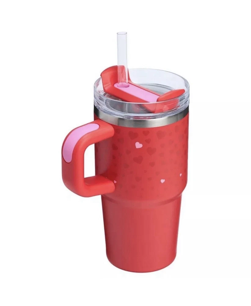 Get ready to celebrate Valentine's Day with this beautiful 20 oz tumbler! The tumbler is made of stainless steel and has a red color with a hearts pattern, perfect for the holiday. It has a drink through lid and comes with a straw for easy drinking. This tumbler is insulated and can keep your hot or cold beverages at the desired temperature for a long time. It is a great addition to your kitchen, dining, and bar collection. The tumbler is also a perfect gift for your loved ones. Celebrate Valentine's Day with this ruby hearts tumbler and enjoy your favorite beverage in style!