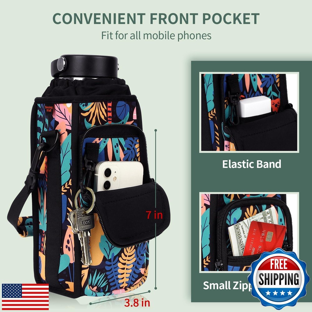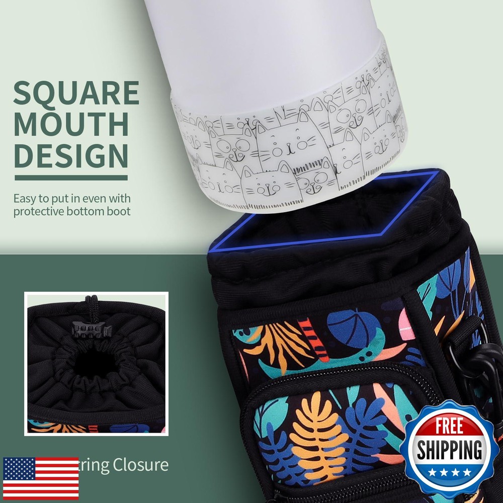 Desing Wish Water Bottle Carrier Bag for Stanley Iceflow Cup 17-30 oz, Large Opening Water Bottle Holder with Strap for Hydro Flask 24 32 40 oz Neoprene Insulated Water Bottle Sling (Jungle Leaf) Features π SQUARE MOUTH DESIGN - This water bottle holder with strap is different from other water bottle bag in that it has a square appearance and can stand on a flat surface more stably. Keep drinking water to stay hydrated when going outdoors without holding a heavy bottle with hands all the time. Compatible with Stanley Iceflow Cup 17 20 22 30 oz and Hydro Flask 24 32 40 oz water bottles. π TWO CONVENIENT POCKETS - There are two pockets outside of the water bottle carrier with strap so that you are able to take something necessary with you for walking. Large pocket (7 x 3.8 in) for storing cell phone, keys, earphones, passports, etc. Small pocket (5 x 3.5 in) for holding ID, credit cards, cash, etc. Large pocket fits most smartphones up to 6.5'' height with cases. π TWO WAYS TO CARRY - Designed with adjustable shoulder strap and padding handle strap, our water bottle sling has two ways of carrying for you to choose. Free your hands and very comfortable to wear. Always remember to keep hydrated wherever you go. Suitable for stainless steel bottles, sports bottles, soft drink, travel coffee mugs, etc. π COMFORTABLE FABRIC - Made of premium thicker neoprene material, this water bottle carrier has high softness, elasticity and comfortable hand feeling. It can protect your bottle well and prevent water bottle from dings and dents during long-term use. π WIDE APPLICATION - Our water bottle holder for walking is very useful for your life. Ideal for daily commuting, work, hiking, walking, fitness, camping, going to the beach, traveling and so on. Suitable for all kinds of people such as office workers, mothers, sports enthusiast. All teens, adults and the aged can easily use the water bottle bag. Shipping Free & Fast Shipping: We offer free shipping to most of the USA with a normal delivery time of 3-7 days. However, due to the current situation, additional delivery time (up to 3 weeks) may be required for some items. Alternative Carriers: We may use alternative carriers (e.g., USPS, FedEx, UPS) to ensure your package arrives safely and on time. Due to the use of multiple carriers, we are unable to provide a tracking number automatically. Handling Time: Orders are processed and shipped within 1-2 business days of receiving cleared payment. Shipping Restrictions: Shipping to Alaska, Hawaii, Puerto Rico, Guam, and other US territories may incur shipping charges or delivery restrictions. Please contact us before ordering, or your order can be refunded/cancelled. State Restrictions: Certain items may not be shipped to California due to state regulations. Contact for Tracking Updates: If you require tracking updates or have any concerns about the delivery of your order, please feel free to contact us, and we will be happy to assist you. Return Policy 30-Day Hassle-Free Returns: If you are not completely satisfied with your purchase, you can return the item for free within 30 days of receiving it for a full refund or exchange. Easy Return Process: Contact us, and we will provide you with a prepaid return shipping label and detailed instructions. No Restocking Fee: There are no restocking fees for returns. However, the buyer is responsible for return shipping costs if the return is not due to a seller's error. Refund Processing: Refunds will be processed within 1 business day of receiving the returned item in its original condition. Payment We accept all major credit cards, PayPal, and Apple Pay for your convenience. Your payment information is secure and encrypted to ensure a safe and seamless transaction. Please complete your payment within 3 days of purchase to avoid any delays in shipping. Feedback Your feedback is extremely important to us. We strive to provide the best products and customer service possible. If you are satisfied with your purchase, please take a moment to leave us a positive review. If you have any concerns or issues with your order, please contact us before leaving negative feedback. We are committed to resolving any problems and ensuring your satisfaction. Contact Us If you have any questions or concerns, please feel free to reach out to our customer support team. You can contact us through the eBay messaging system. We are available Monday to Friday, 9:00 am to 5:00 pm EST, and we will do our best to respond to your inquiry within 24 hours. Thank you for supporting our small family business!