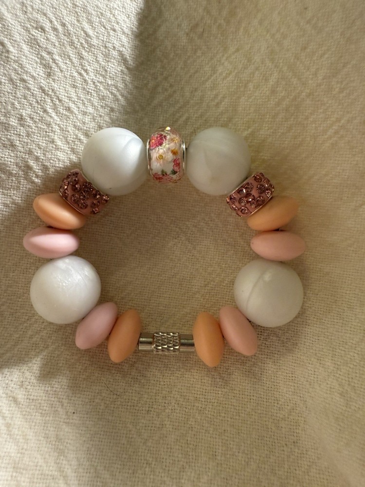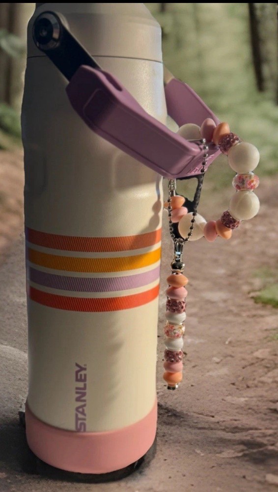 Get ready for the NEW LOVESHACKFANCY Ibiza collection! These charms can be used on the cups, backpacks and coolers! 🎀 This handmade Stanley Bracelet, Bogg Bag or Purse Backpack Charm Set is for cups or bags in colors such as Pink Mesa Sunset, LoveShackFancy or any neutral tone, matches Petal, Peony, Cherry Blossom, Rose Quartz, etc. and features a solid light pink color with whites, tans, rhinestones and a white pink and black focal bead/charm. Made of silicone material and a coated steel, screw clasp wire. It can be used for both hot and cold beverage cups, on Bogg Bags, purse handles, backpacks or phones! The set includes two charms: one cup bracelet (or purse handle bracelet) and a straw dangle for brands such as Stanley, Bogg, iPhone, etc. Handmade in the United States, this set is a stylish and functional addition to cup, bag, backpack and more! This set includes the two charms, as well as a straw attachment to hang from any type of Stanley cup or other cups with a standard size straw. Please note: CUP NOT INCLUDED. The bracelet charm measures approximately: 5.9” It will fit either Stanley handles, Bogg Bag straps and many purse straps/handles - please measure your bag to be sure! The dangle/bauble charm is: 3” long plus 4” (2”closed) on the beaded attachment. The attachment can be shortened by simply cutting off any extra length. If you have any questions, please do not hesitate to ask me.