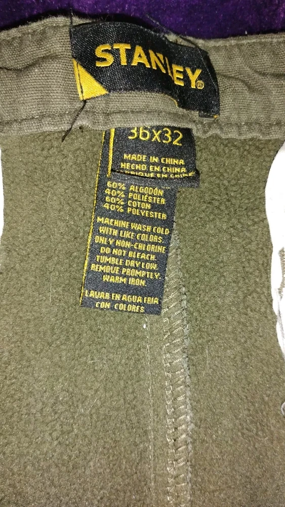 Stanley Men's Fleece Lined Pants 36x32 Green