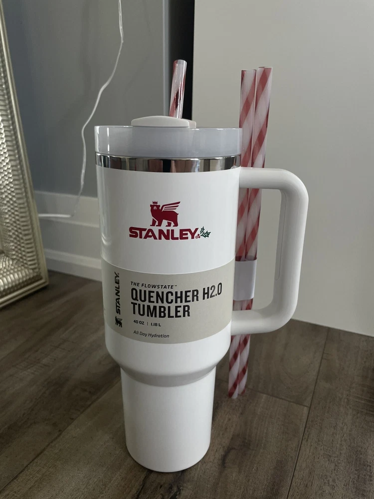 Get into the Christmas spirit with the Stanley Mistletoe Twist Quencher Flowstate Tumbler. This two-piece set includes a 40oz tumbler with a twist lid, perfect for keeping your hot or cold beverages at the right temperature. Made of durable stainless steel, this tumbler features insulation to keep your drinks hot for up to 12 hours or cold for up to 16 hours.The tumbler also comes with a straw and a handle for easy carrying. The solid white color with a Christmas theme makes it a perfect gift for the holiday season. Machine washable for easy cleaning, this tumbler is a must-have for anyone who loves sports and the outdoors. Get it now on Cyber Monday and have it in hand before the holiday rush!