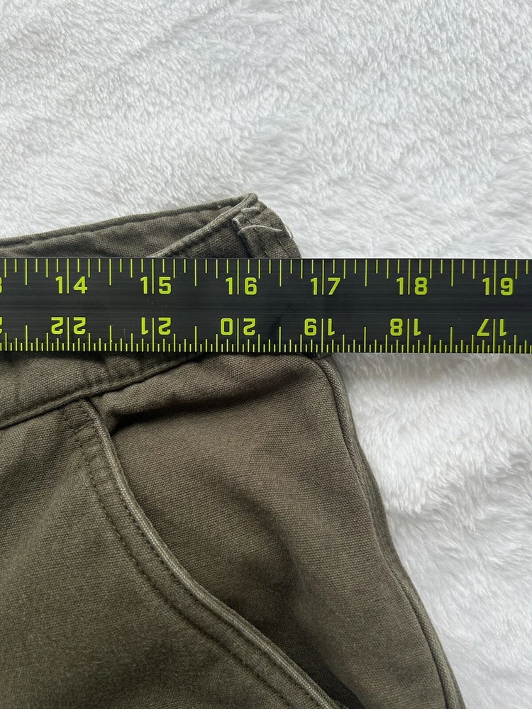 Upgrade your workwear with these Stanley pants gray(greenish) color and carpenter style. Made of a cozy blend of polyester and cotton, these pants have a flat front and straight leg style, with a mid-rise waist of 36 inches. They feature a zip and button closure, and are lined with fleece for added warmth, making them perfect for fall, winter, and spring seasons. These pants have pockets for practicality, and are machine washable for easy care. The size type is regular, with a fit that's just right for everyday wear. Get these solid-colored pants for your next work project, without worrying about their condition. Tag says 36/34 but measures 34/30