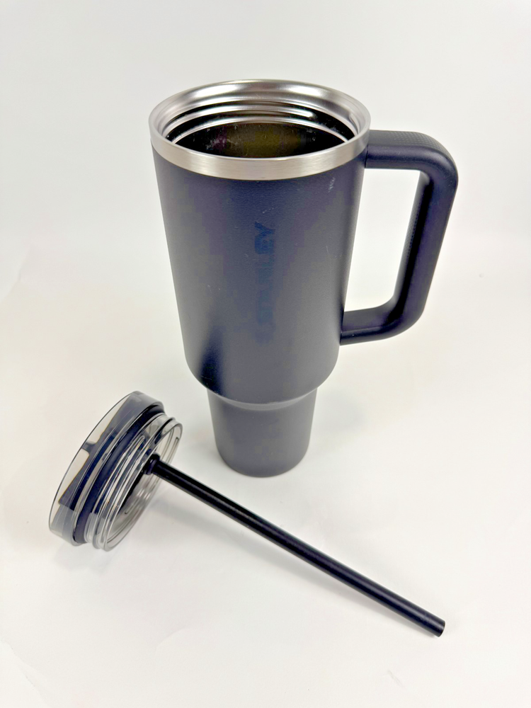 Stanley Quencher 40 oz Travel Tumbler with Handle & Flip-Straw Lid – Used Stay hydrated on the go with this durable and stylish 40 oz Stanley Quencher travel tumbler. Designed for convenience and performance, it features a sturdy handle, stainless steel body, and a flip-straw lid for easy sipping. Item Features: Brand: Stanley Model: Quencher H2.0 FlowState Tumbler Capacity: 40 oz (1.18 L) Material: Stainless steel Lid: Flip-straw lid for spill-resistant drinking Handle: Ergonomic side handle for easy grip Color: Black/Steel with black lid Size: Fits most vehicle cup holders Great for: Outdoor use, gym, commuting, or all-day hydration Condition: Used – Good Light scuffs and minor cosmetic wear from prior use No dents or cracks; structure is fully intact Lid and straw in working condition Interior clean with no staining or odor Please review photos for details Shipping: Ships via USPS Ground Advantage Buyer pays shipping cost Most items ship by the next business day Returns: 30-day returns accepted Item must be returned in the same condition as received Choose sustainability by reusing quality drinkware. This Stanley tumbler is built to last and ready for its next adventure!