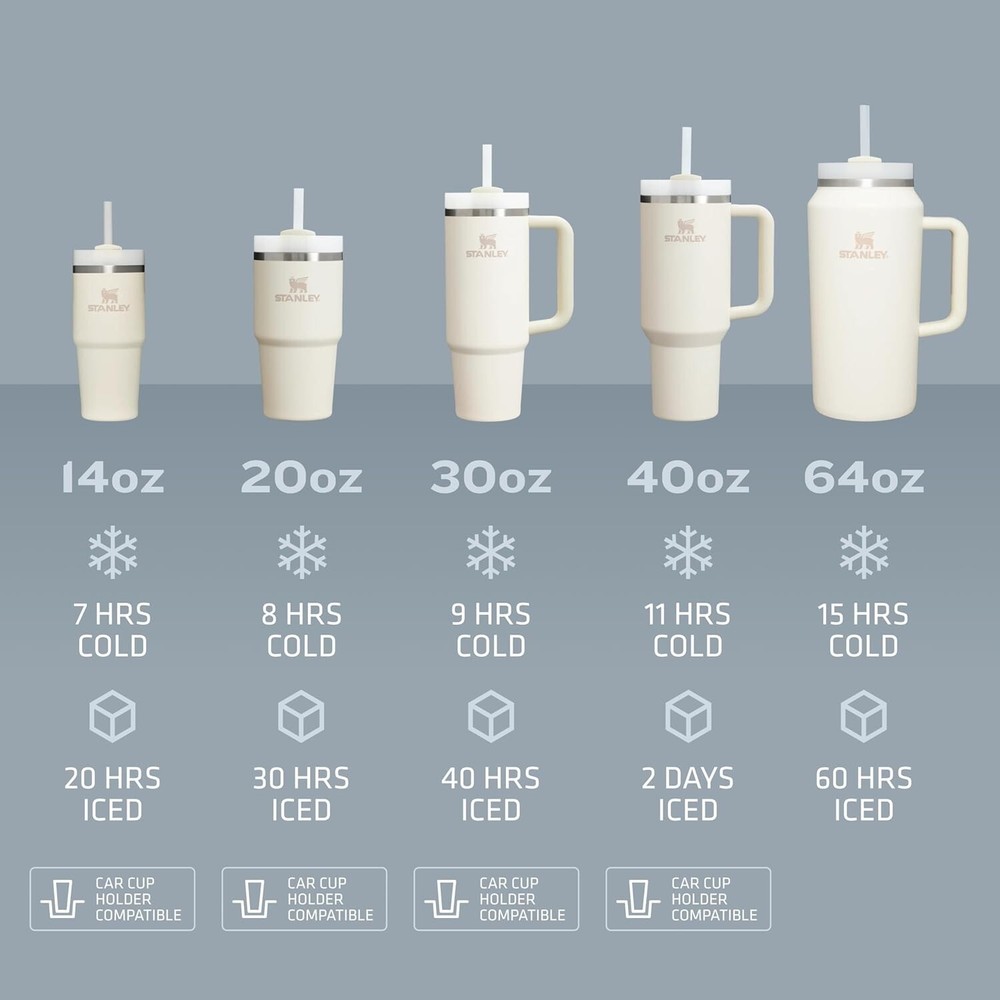 YOUR DREAM TUMBLER: Whichever way your day flows, the H2.0 FlowState tumbler keeps you refreshed with fewer refills. Double wall vacuum insulation means drinks stay cold, iced or hot for hours. Choose between our 14oz, 20oz, 30oz,40oz and 64oz options depending on your hydration needs. The narrow base on all sizes (except 64oz) fits just about any car cup holder, keeping it right by your side. ADVANCED LID CONSTRUCTION: Whether you prefer small sips or maximum thirst quenching, Stanley has developed an advanced FlowState lid, featuring a rotating cover with three positions: a straw opening designed to resist splashes with a seal that holds the reusable straw in place, a drink opening, and a full-cover top for added leak resistance. We’ve also included an ergonomic, comfort-grip handle, so you can easily carry your ice-cold water to work, meetings, the gym or trips out of town. EARTH-FRIENDLY DURABILITY: Constructed of 90% recycled BPA free stainless steel for sustainable sipping, the Stanley Quencher H2.0 has the durability to stand up to a lifetime of use. Eliminate the use of single-use plastic bottles and straws with a travel tumbler built with sustainability in mind. DISHWASHER SAFE: Spend less time hunched over the sink and more time doing the things you love. Cleaning your tumbler and lid couldn't be easier, just pop them into the dishwasher. Unlike plastic bottles that retain stains & smells, this metallic beauty comes out pristine LIFETIME WARRANTY: Since 1913 we’ve promised to provide rugged, capable gear for food and drink - accessories built to last a lifetime. It’s a promise we still keep. Stanley products purchased from Stanley Resellers come with a lifetime warranty. Rest easy knowing we’ve got your back through it all.