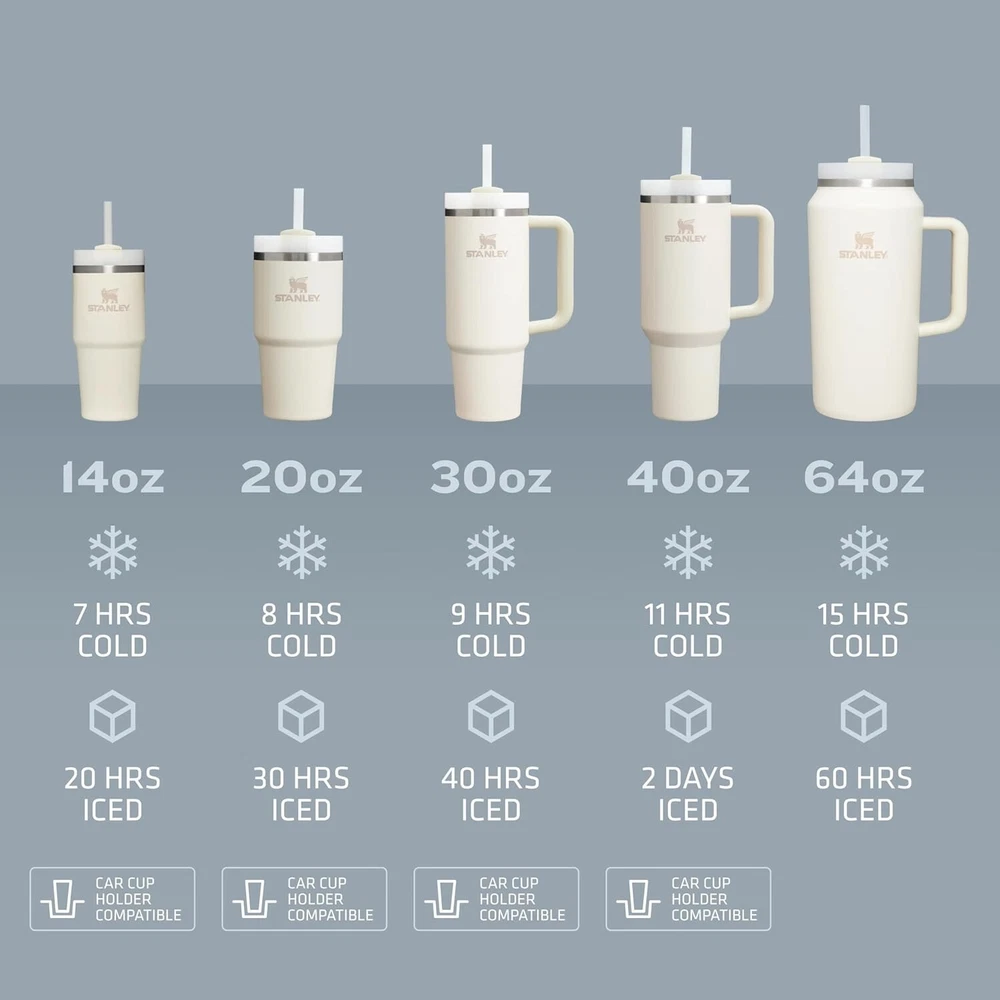 This Stanley Quencher H2.0 tumbler is the perfect addition to your collection. It comes in a beautiful lavender color and is made of high-quality stainless steel, plastic, steel, and BPA-free plastic materials. The tumbler has a twist lid and comes with a handle, making it easy to carry around. It is suitable for both hot and cold beverages and is insulated to keep your drink at the perfect temperature. The tumbler is decorated with an ice cube and beach-themed design, perfect for your next outdoor adventure. It is also break/chip resistant and freezer safe, making it easy to use and store. This three-piece tumbler set is machine washable and has a weight of 1.4 lbs. It is suitable for sports enthusiasts and is ideal for storing your drinks while you work or travel.